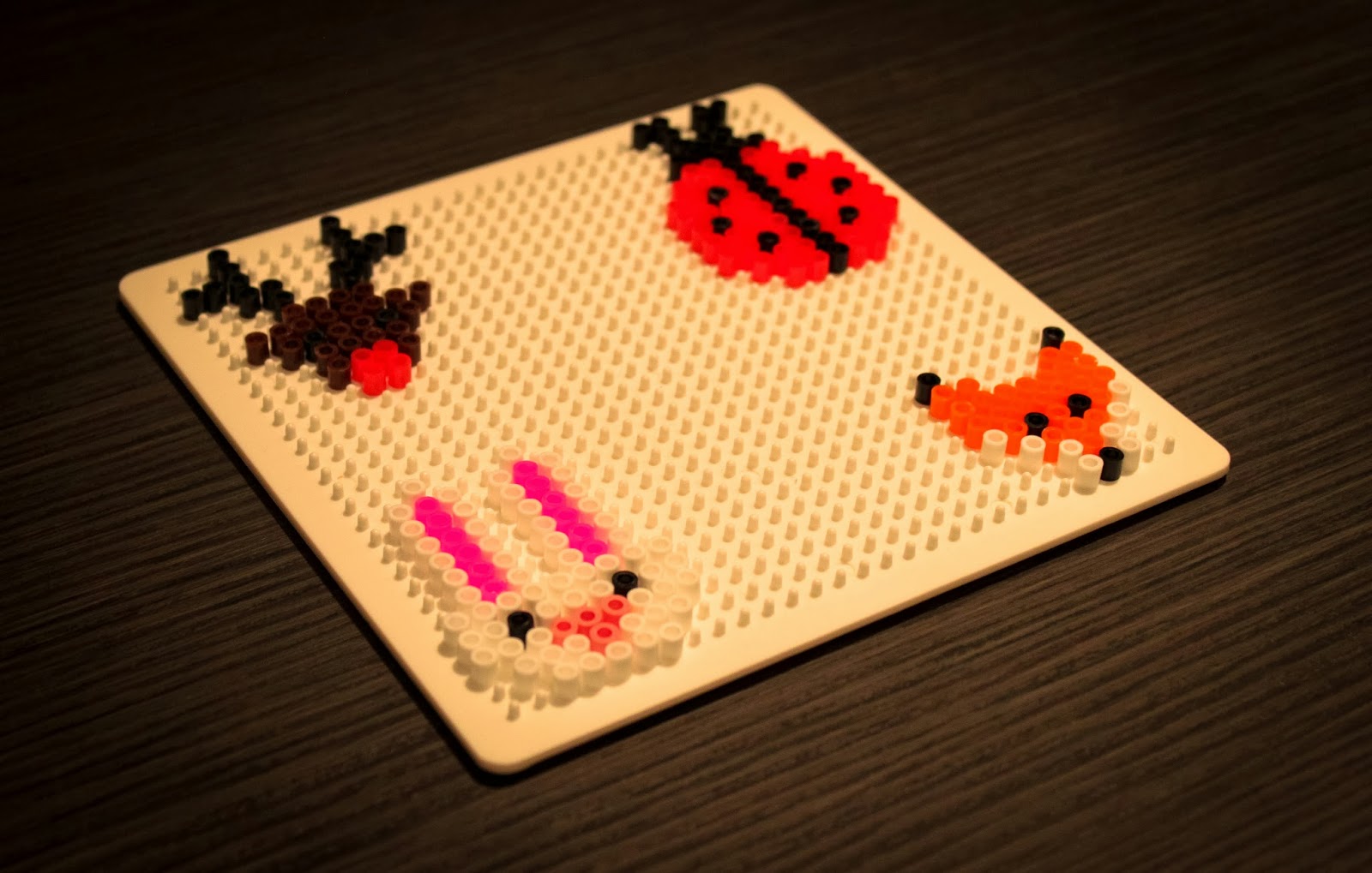Laatikossani on ollut jo jonkin aikaa purkillinen Hama-helmiä, joiden kanssa en ole oikein keksinyt mitään kivaa tehtäväksi. Päätin etsiskellä netistä hieman ideoita ja löysinkin hauskoja Hama-helmistä tehtyjä eläinkuvioita. Ajattelin itsekin kokeilla, kuinka vaikeaa sellaisia olisi rakennella mallin mukaan. Rakentaminen oli varsin helppoa ja koitin valita itselleni muistiin yksinkertaisia malleja, joita olisi helppo käyttää oppilaiden kanssa. Rakentelin ne alustalle silittämistä odottelemaan.
